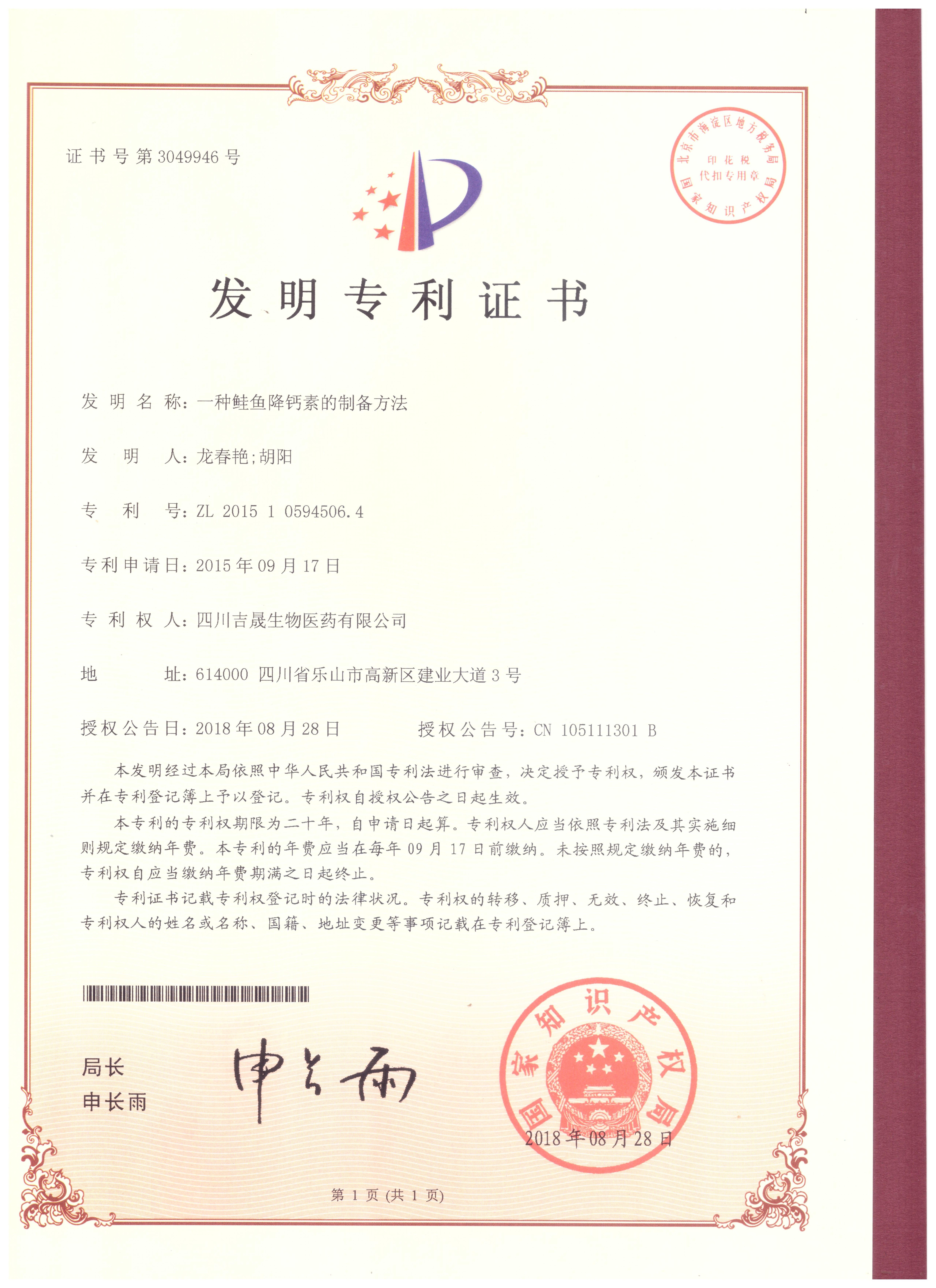 生物發酵專利                                                                   依替巴肽專利                                                   鮭魚降鈣素專利